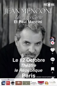 Cet homme Corse dans toute sa noblesse et sa fierté, citoyen du monde, partage sa passion et emporte son public avec lui. Il exprime une large palette de sentiments et décline ses couleurs qui se dessinent et enflamment talentueusement la scène. L’univers musical de Jean Menconi est ouvert sur le monde et sa mixité, ainsi la chanson traditionnelle corse se marie avec talent à la variété internationale et aux chants corses pour notre plus grand plaisir.